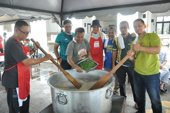 Penyediaan bubur lambuk itu melibatkan gotong-royong dari 50 petugas sukarelawan bermula pukul 8 pagi hingga 12 tengah hari.